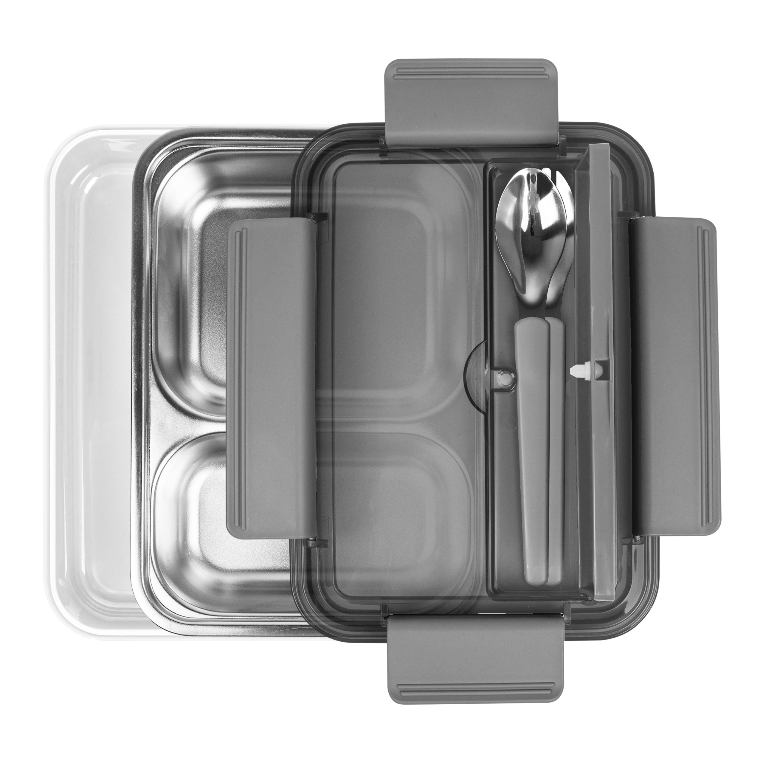 Має прозору кришку, яка герметично закривається з додатковим відділенням, де зберігається виделка+ложка (в комплекті металева ложка+виделка). Посудина на два відділення з високоякісної нержавіючої сталі 304 . Об’єм: 800 мл. Розмір 22,5 х 16 х 7 см. В подарунковій картонній коробці. Розмір індивідуальної коробки: 22,8 х 16,5 х 7,8 см. Метод нанесення: шовкодрук, тамподрук, уф-друк.