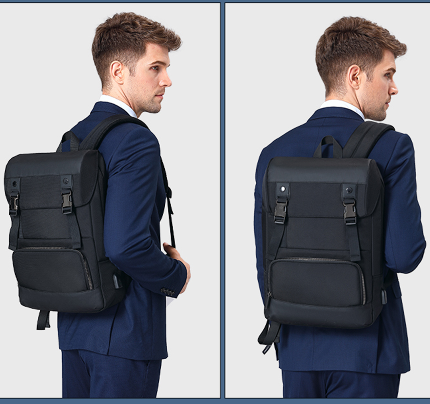 Рюкзак з відділенням для ноутбука 15,6” та відділенням для ipad .Тканина водонепроникний 100% поліестер + PU, має USB Port, великий відділ та різні кармани органайзери, кишеня Anti theft (RFID) ,прихована кишеня на лямці для карток, на задній спинці ремінь для валізи.