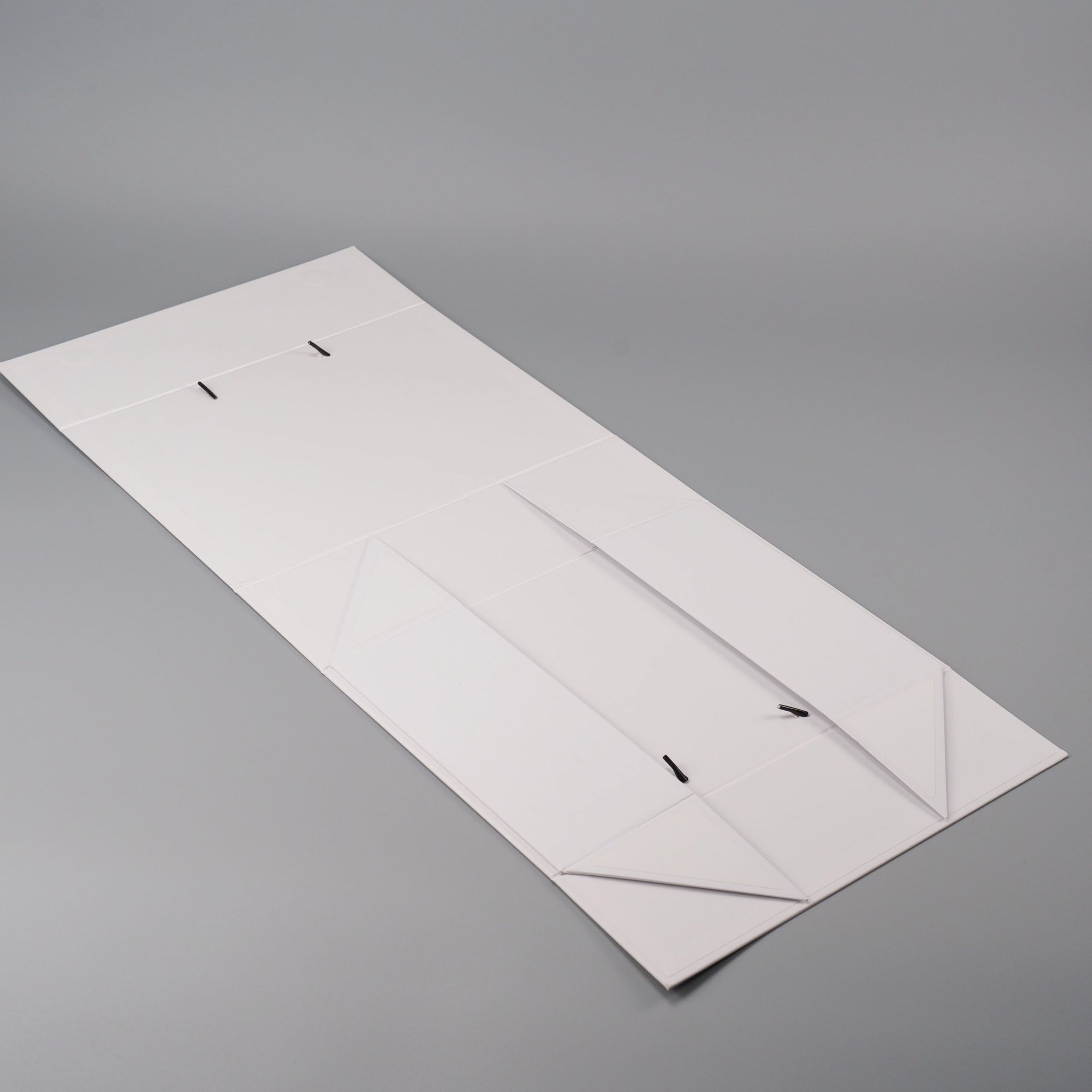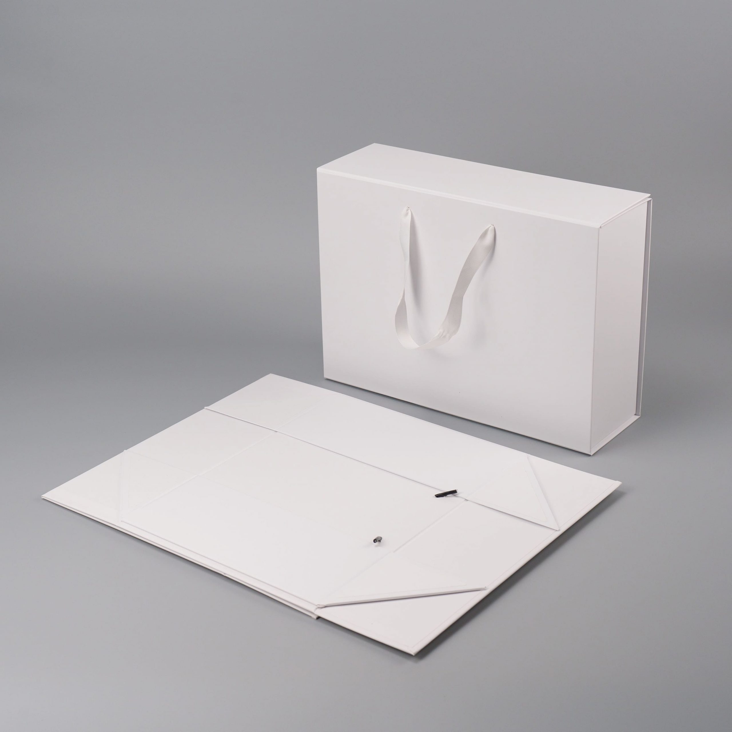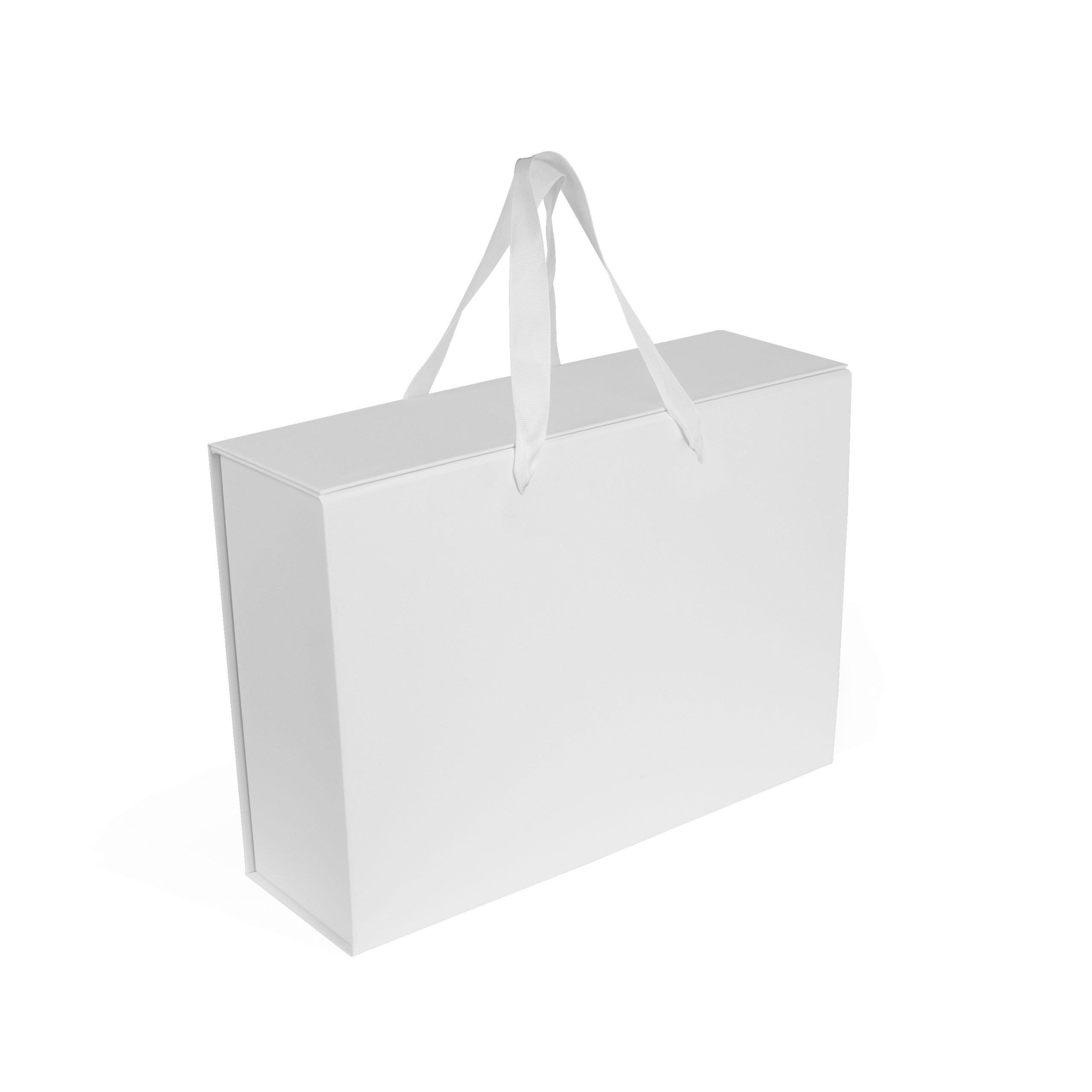Коробка складна з твердого, переплетеного картону, з двома ручками, вкрита дизайнерським папером. Кришка на магнітах