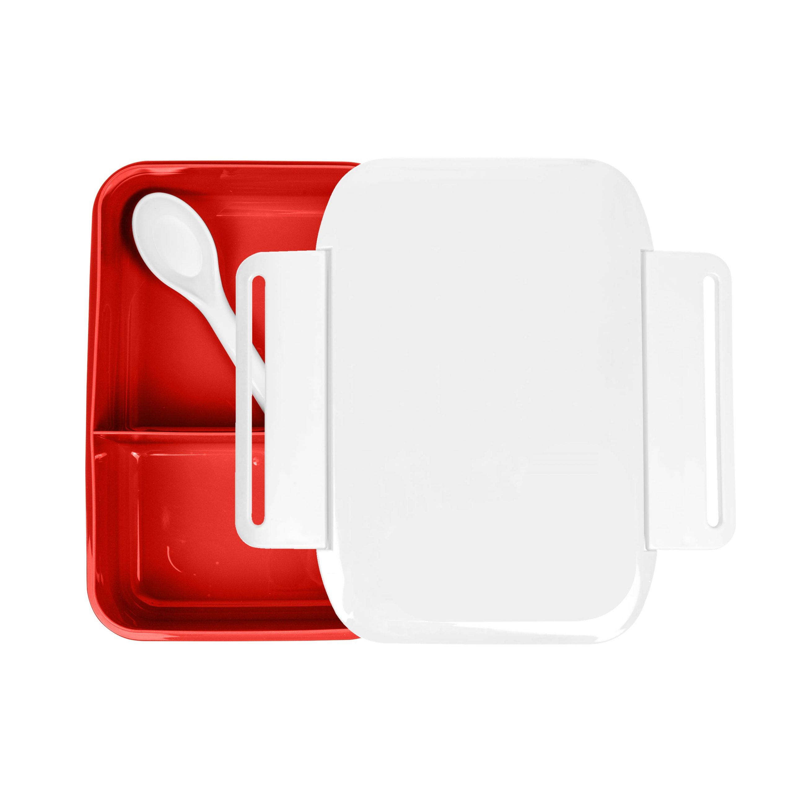 Ланчбокс з харчового поліпропилену (BPA FREE) , на кришці силіконова резинка для щільного закривання. Об’єм: 950 мл. Розмір 20,8 х14,6 х 6,3 см. Можна використовувати в микрохвильовій печі (крім режиму гриль) та посудомийній машині.