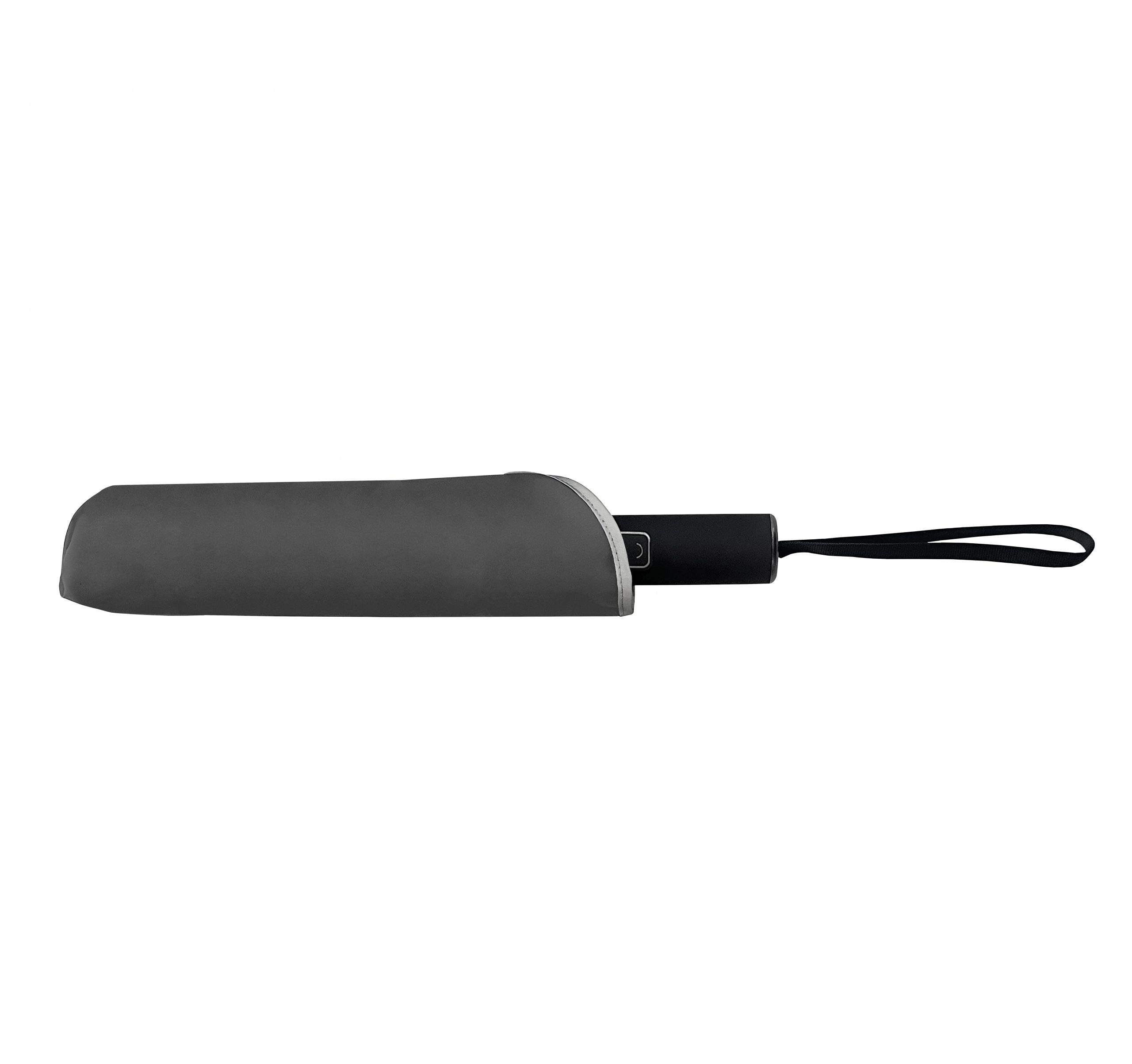 Автоматична складна парасоля Reflect зі зручною пластиковою ручкою (покриття софттач), купол має 10 панелей з матеріалу Епонж 190Т.