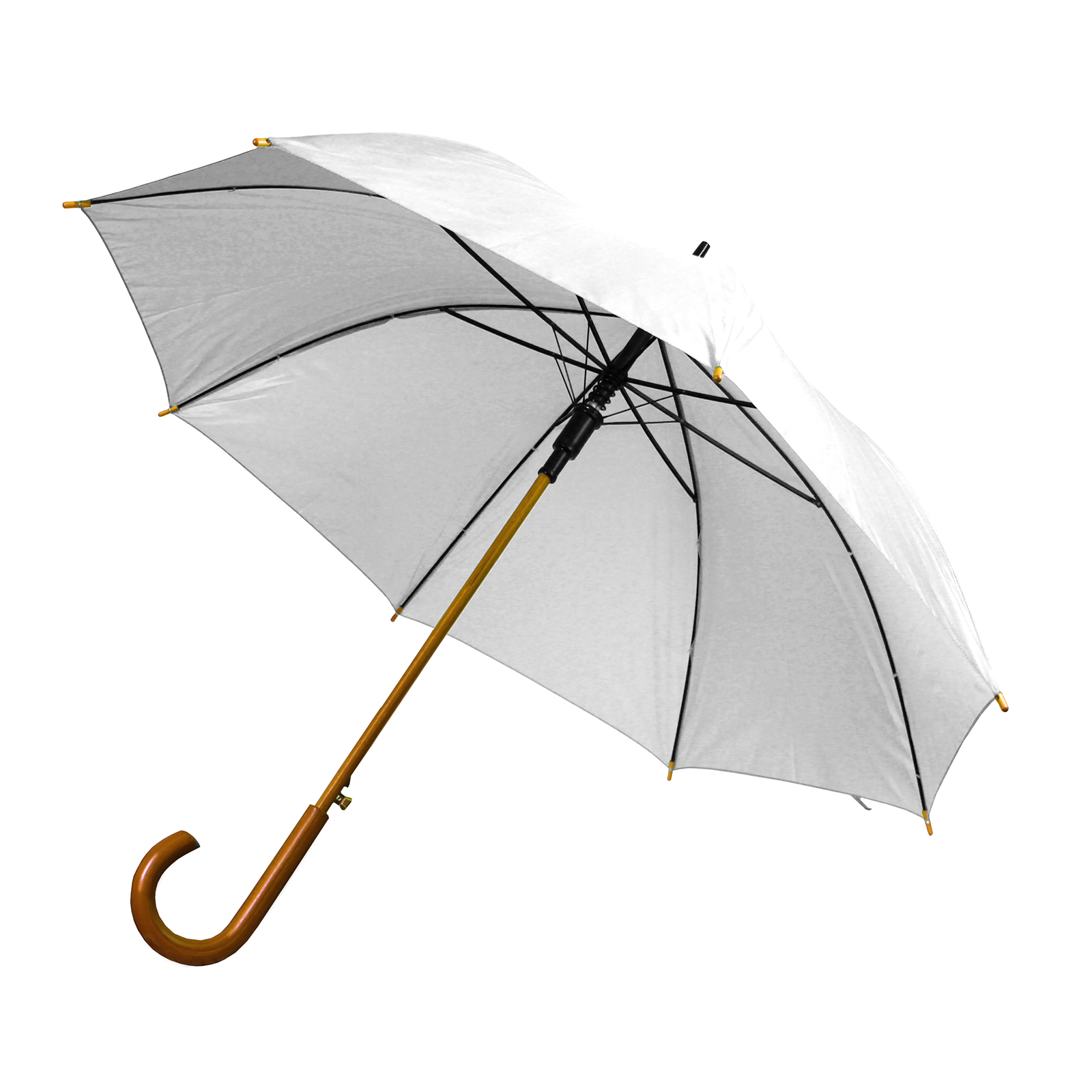Парасоля-тростина напівавтомат з деревяною вигнутою ручкою.